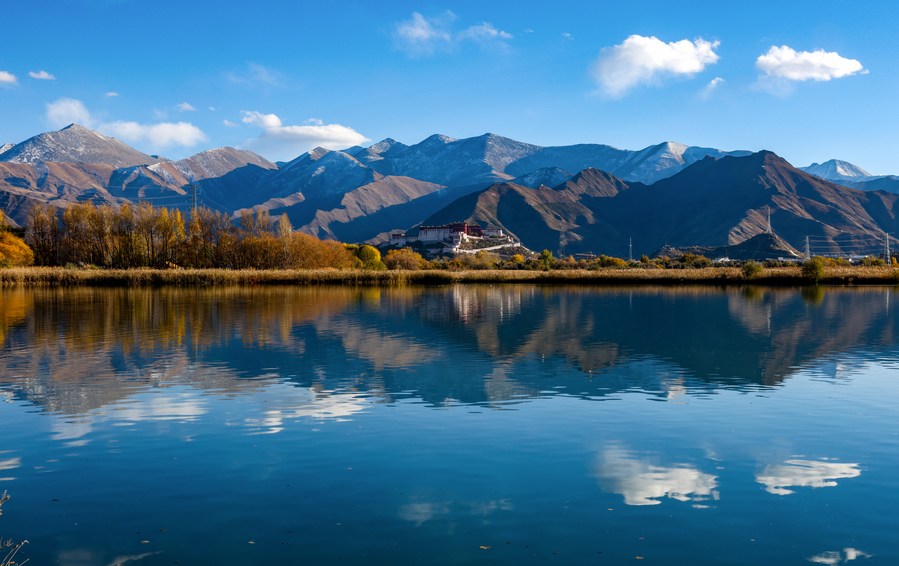 This photo taken on Nov. 5, 2022 shows the Lhalu wetland in Lhasa, southwest China's Tibet Autonomous Region. (Xinhua/Lyu Qiuping)