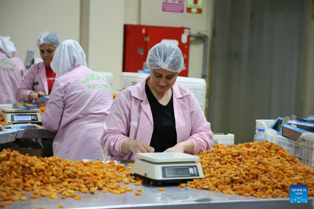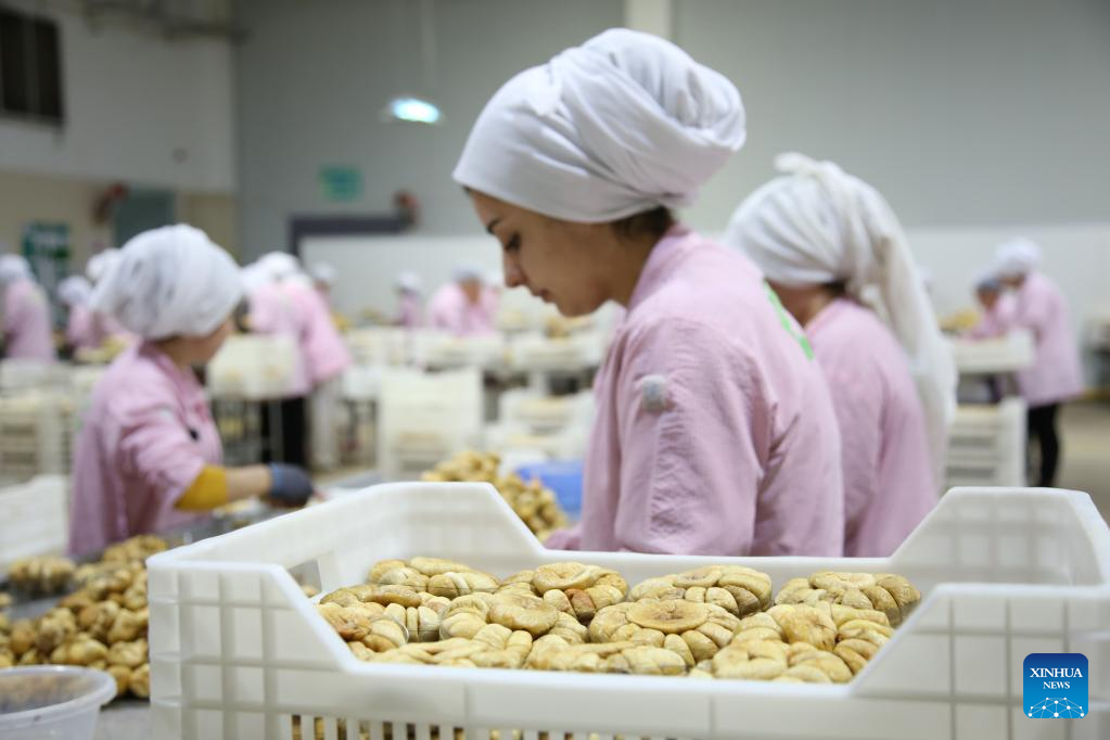 Workers work in a dried fruit factory in Aydin, Trkiye, on Oct. 28, 2022. Turkish companies view the on-going 5th China International Import Expo (CIIE) as a premium platform to seek business opportunities and further tap into the vast consumer market of China and beyond. (Photo by Li Zhenbei/Xinhua)