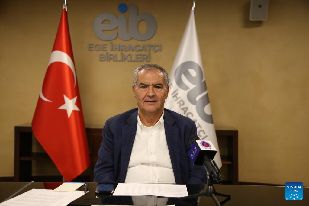 Mehmet Ali Isik, Chairman of the Aegean Dried Fruits and Products Exporters Association, speaks during an interview with Xinhua in Izmir, Trkiye, on Oct. 28, 2022. Turkish companies view the on-going 5th China International Import Expo (CIIE) as a premium platform to seek business opportunities and further tap into the vast consumer market of China and beyond. (Photo by Li Zhenbei/Xinhua)