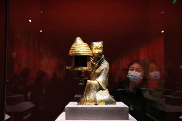 The Changxin Palace Lamp, a bronze artifact dating back to the Western Han Dynasty (206 BC-AD 24), is displayed at the Palace Museum in Beijing on Jan 25, 2022. JIANG DONG/CHINA DAILY