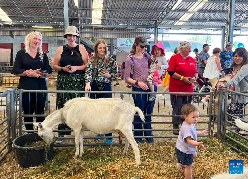 Visitors watch wool displayed during the Canterbury Agricultural Show in Christchurch, New Zealand, Nov. 9, 2022. One of the oldest expos in New Zealand, the Canterbury Agricultural Show, threw its gates open to the public on Wednesday in the New Zealand's Christchurch. (Photo by Walter/Xinhua)