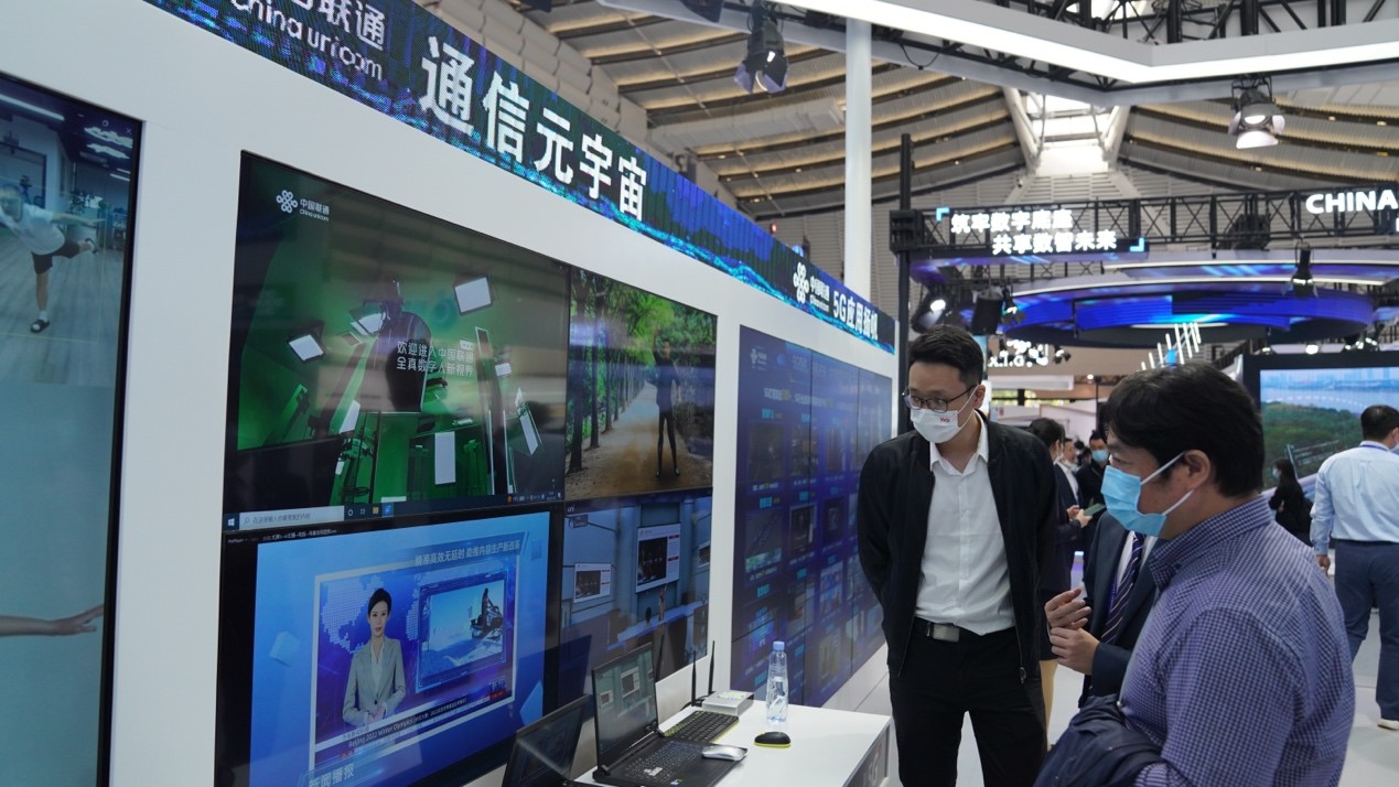 People visit the booth of China Unicom at the Light of Internet Expo, part of the World Internet Conference (WIC) Wuzhen Summit in Wuzhen, east China’s Zhejiang Province, Nov.8, 2022. The Light of Internet Expo opened on Nov. 8, 2022, a day before the opening ceremony of the WIC Wuzhen Summit. (People’s Daily Online/Liu Xinwei)