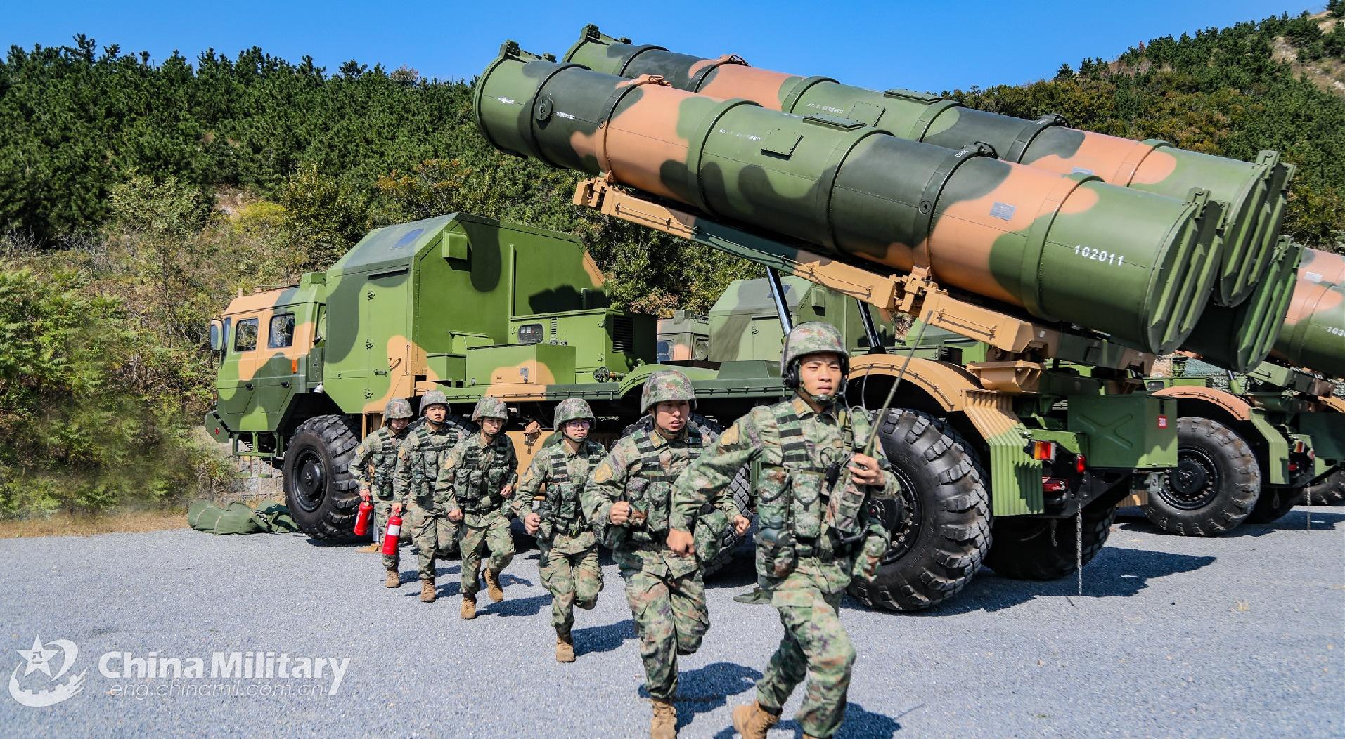 Soldier assigned to a coastal missile regiment with the navy under the PLA Northern Theater Command rush to their positions during a land-to-sea training exercise on October 11, 2022. (eng.chinamil.com.cn/Photo by Peng Xi)