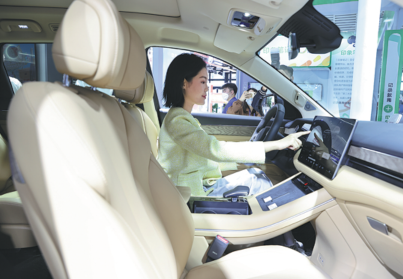 A woman tries out an intelligent vehicle demonstrated at the 2022 World Internet Conference. WANG JING/CHINA DAILY