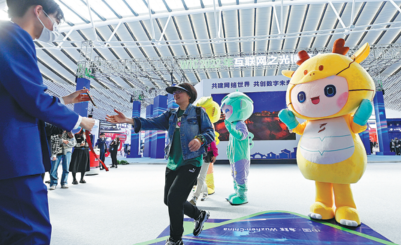 Mascots of the 19th Asian Games Hangzhou 2022 make an appearance at the conference. WEI XIAOHAO/CHINA DAILY