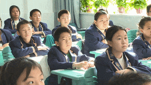 This GIF image shows students in school uniforms featuring Dunhuang cultural elements attending a class in Dunhuang city, northwest China's Gansu Province. (Photo courtesy of the Publicity Department of the Communist Party of China Dunhuang Municipal Committee)
