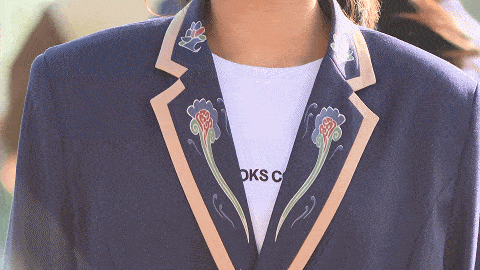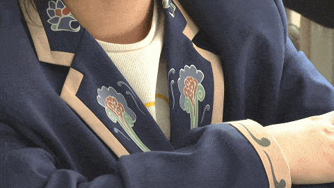 This GIF image shows elements of Dunhuang culture on a school uniform. (Photo courtesy of the Publicity Department of the Communist Party of China Dunhuang Municipal Committee)