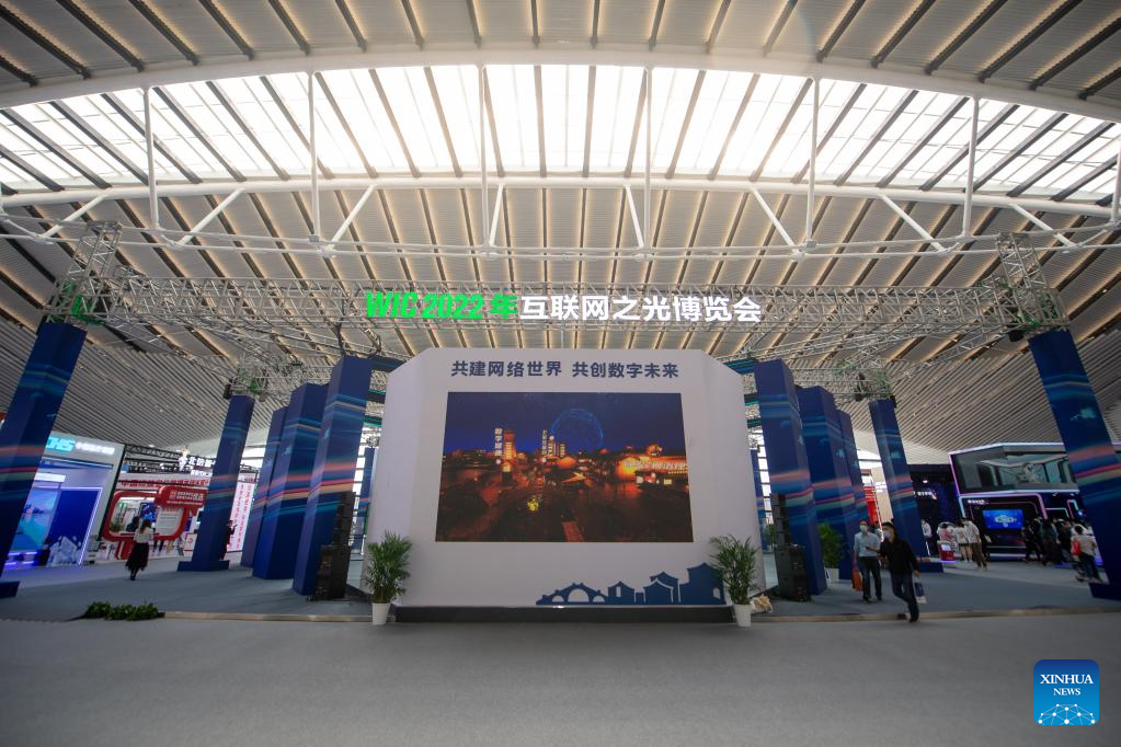 This photo taken on Nov. 10, 2022 shows the venue of the Light of Internet Expo in Wuzhen, east China's Zhejiang Province. (Xinhua/Jiang Han)