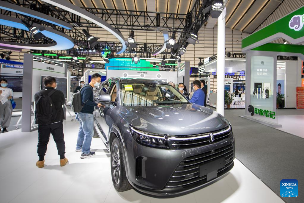 This photo taken on Nov. 10, 2022 shows a vehicle displayed at the booth of Huawei during the Light of Internet Expo in Wuzhen, east China's Zhejiang Province. (Xinhua/Jiang Han)