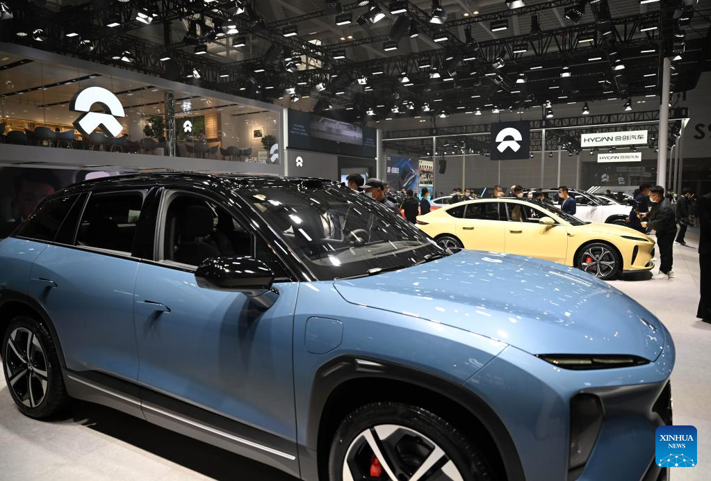 People visit the booth of Chinese electric automaker NIO during the China Motor Show (Tianjin) 2022 in north China's Tianjin, Nov. 10, 2022. (Xinhua/Zhao Zishuo)
