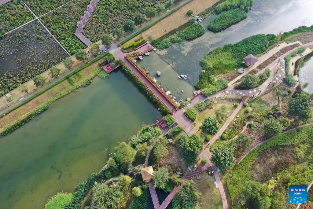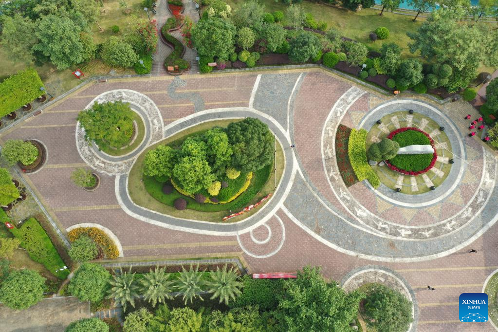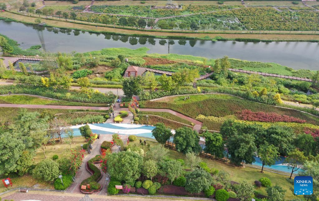 This aerial photo taken on Nov. 10, 2022 shows the view of Nakao River wetland park in Nanning, south China's Guangxi Zhuang Autonomous Region. (Xinhua/Lu Boan)