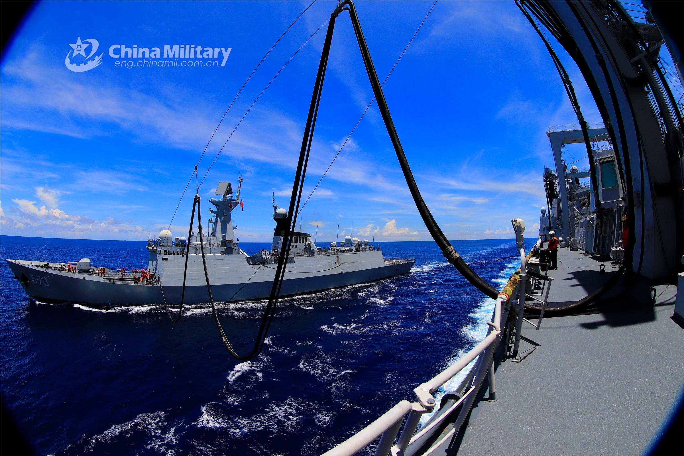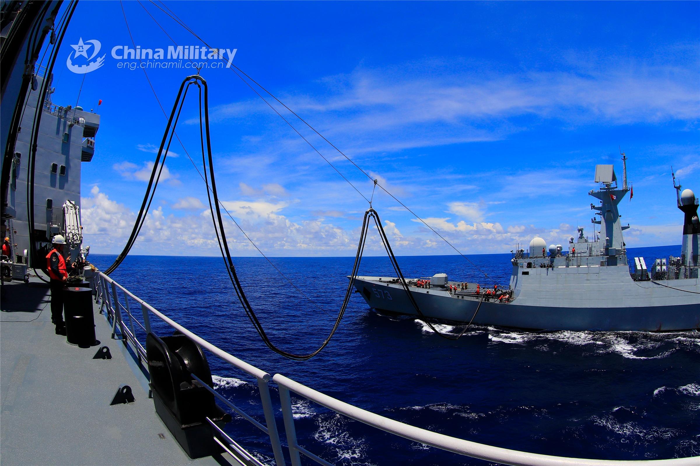 Vessels attached to a naval combat support flotilla under the PLA Southern Theater Command conduct replenishment-at-sea during a maritime real combat training exercise at the end of September 2022, to hone their combat support capabilities. (eng.chinamil.com.cn/Photo by Li Junlin)