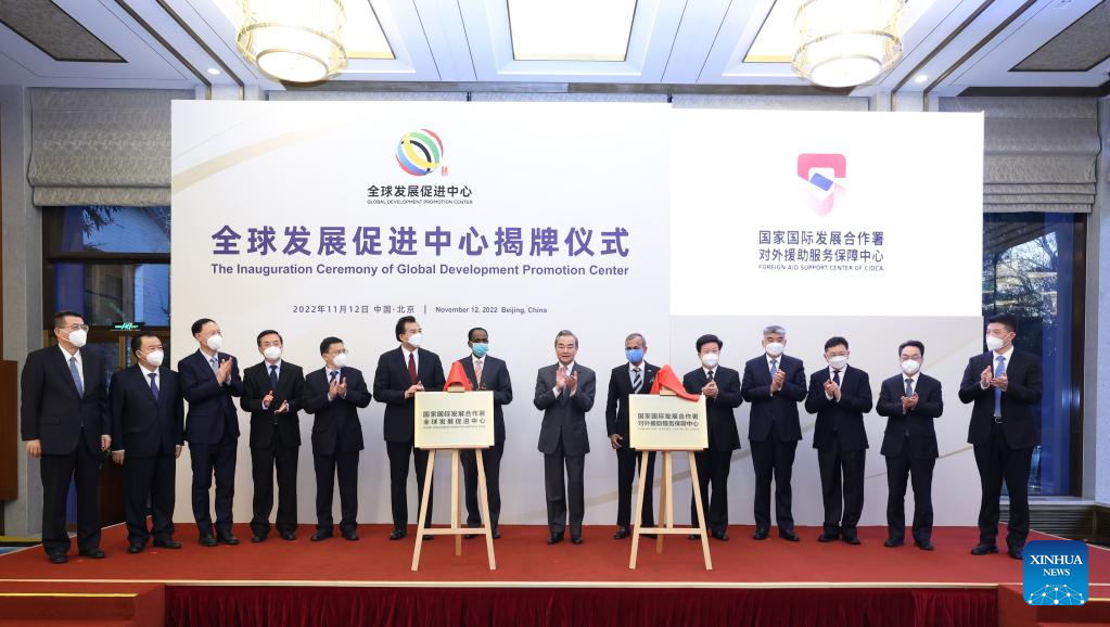BEIJING, Nov. 13 (Xinhua) -- Chinese State Councilor and Foreign Minister Wang Yi on Saturday attended the inauguration ceremony of the Global Development Promotion Center, saying that China will build the center into an important platform to promote the Global Development Initiative (GDI).