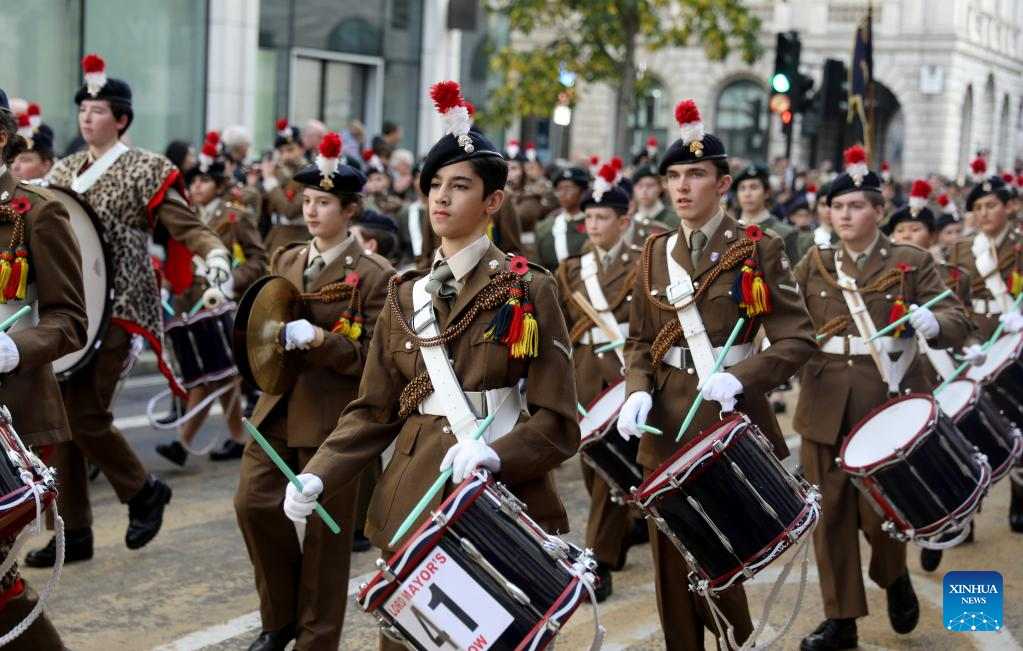LONDON, Nov. 12 (Xinhua) -- The annual "Lord Mayor's Show" was held Saturday in the City of London. Chinese participants once again staged eye-catching performances during the parade and brought diversity to the show.