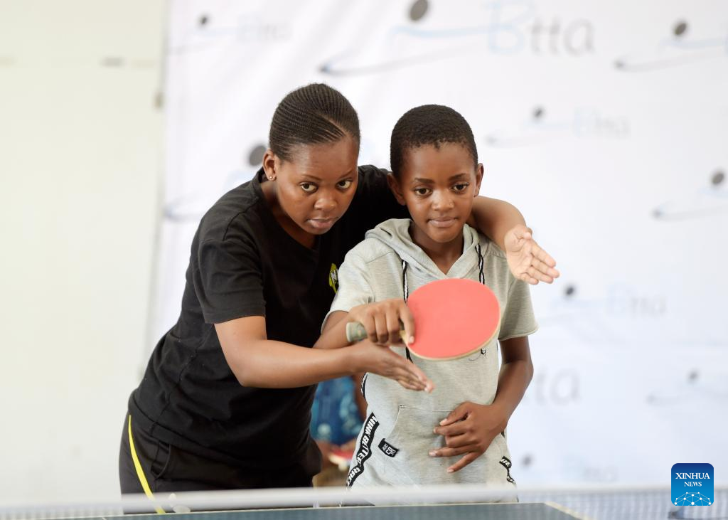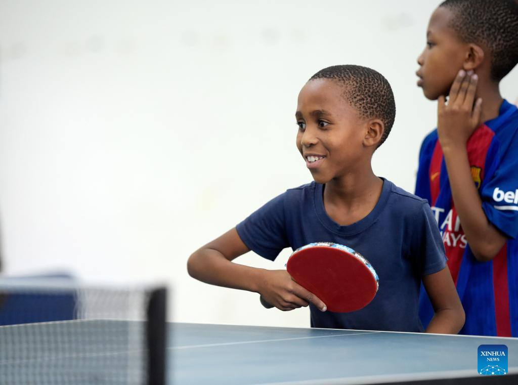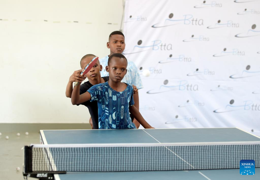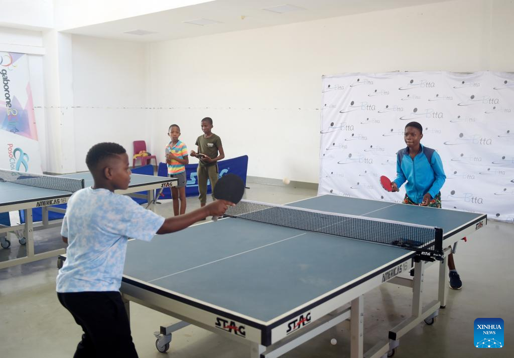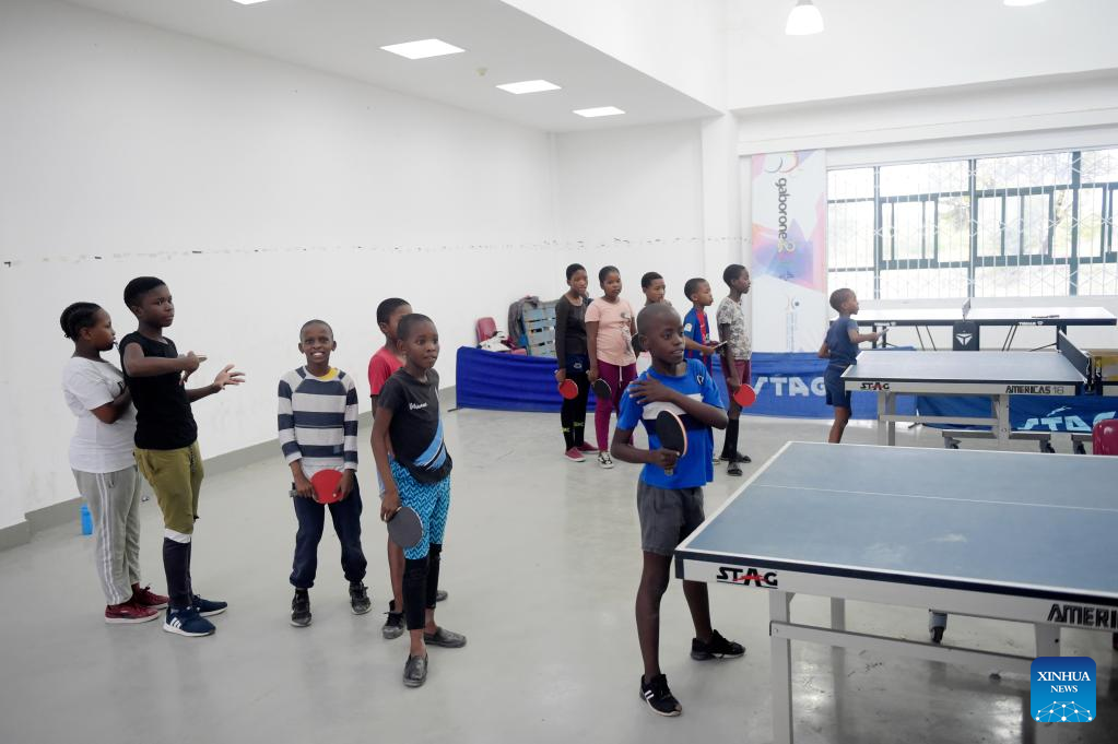 Kids practice table tennis at BNYC in Gaborone, Botswana's capital city, Nov. 11, 2022. (Photo by Tshekiso Tebalo/Xinhua)