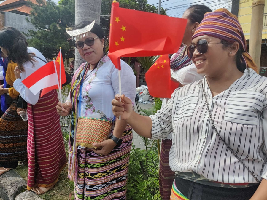 Chinese President Xi Jinping arrived in Bali, Indonesia, on Monday for the 17th Group of 20 (G20) Summit. Photo shows local people lining up along the road, waving flags to welcome the Chinese guests. (People's Daily Online/Zhong Wenxing)
