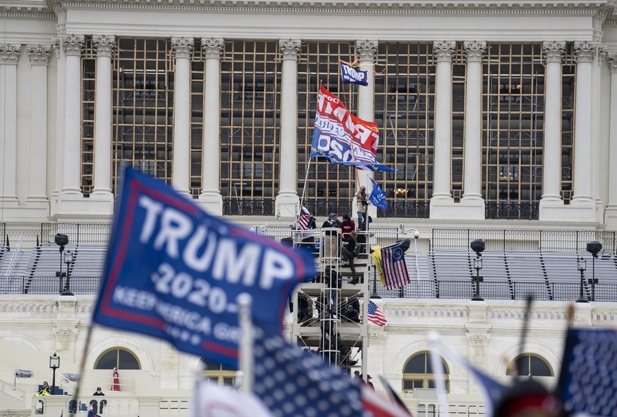 Supporters of then U.S. President Donald Trump gather near the U.S. Capitol building in Washington, D.C., the United States, Jan. 6, 2021. (Xinhua/Liu Jie)