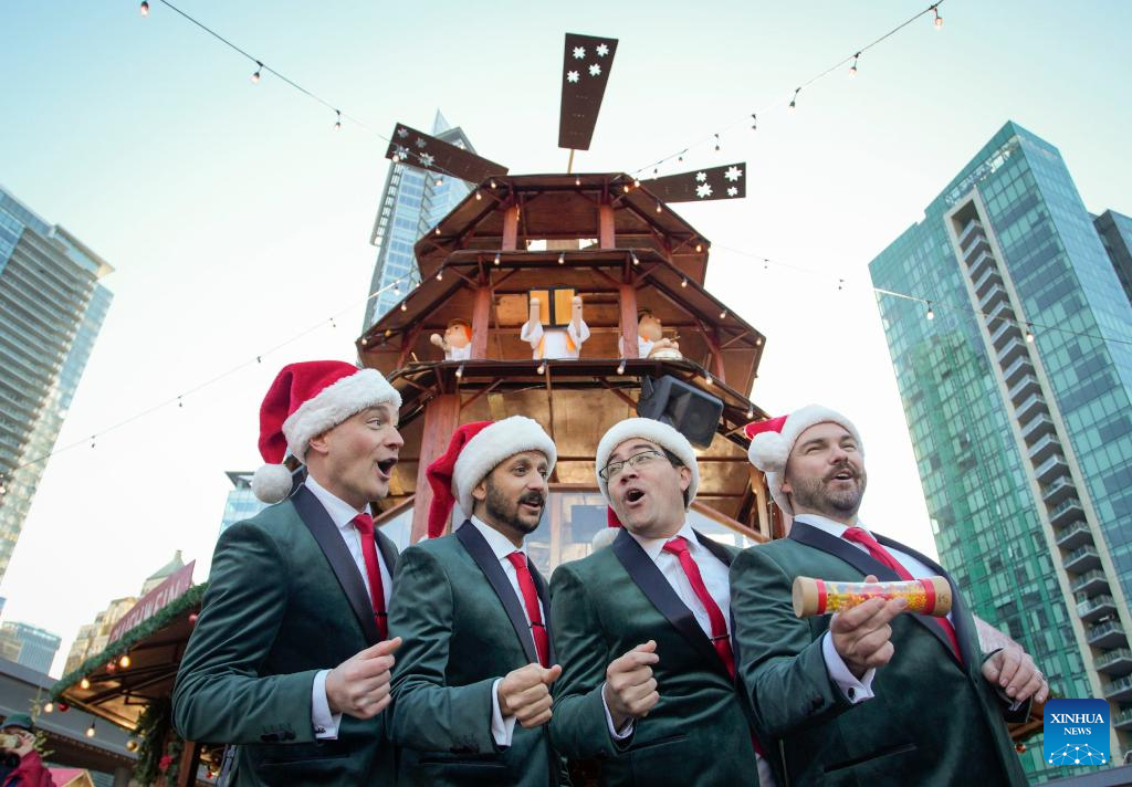 Performers sing at the Vancouver Christmas Market in Vancouver, British Columbia, Canada, on Nov. 14, 2022. (Photo by Liang Sen/Xinhua)