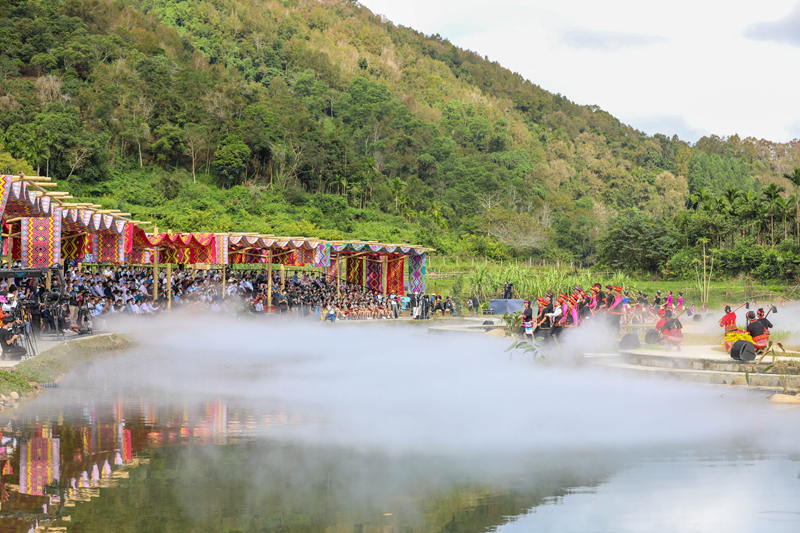 A live-action performance showcasing the idyllic scenery of south China's Hainan Province was held in Maona village, Shuiman township, Wuzhishan city, Hainan, at the opening ceremony of the 2022 "Rainforest and You" experience activity on Nov. 13, 2022.