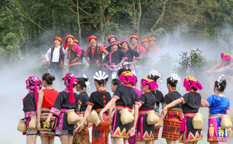 The show was presented by performers from the Guangdong Song and Dance Theater, together with more than 400 local residents in Wuzhishan city. Made up of five chapters, the show depicted the beauty and prosperity of the rural area in Hainan, featuring rainforests, nature, ethnic groups and idyllic scenery.
