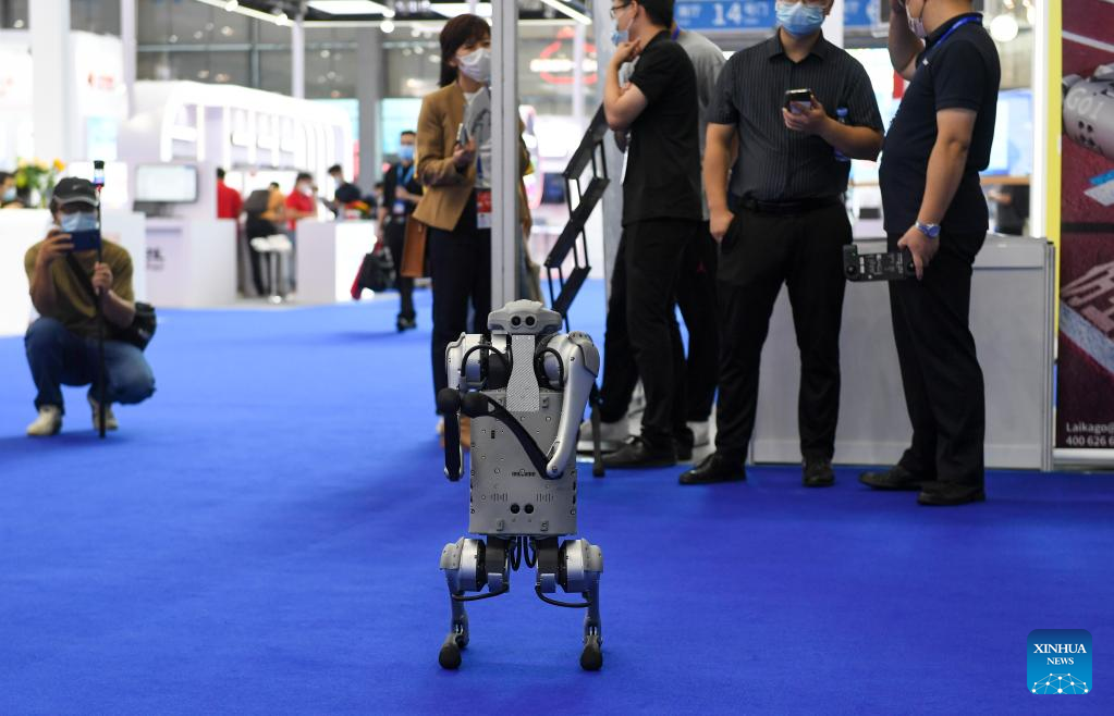 This photo taken on Nov. 15, 2022 shows a robotic dog at the 24th China Hi-Tech Fair (CHTF) in Shenzhen, south China's Guangdong Province. (Xinhua/Mao Siqian)