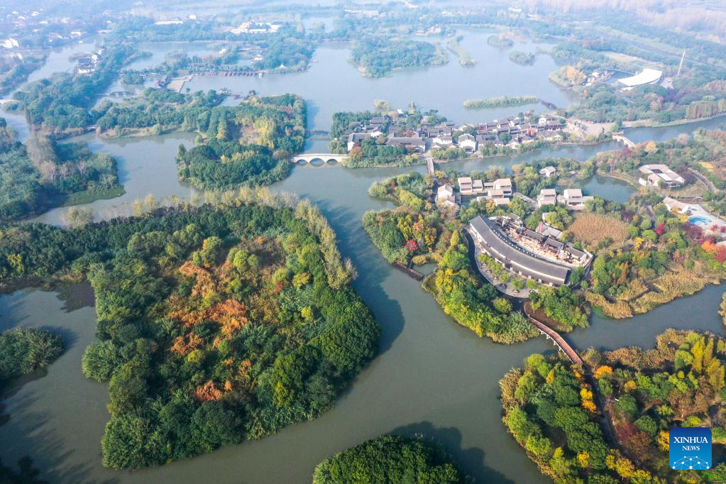 This photo taken on Nov. 15, 2022 shows a view of the Shanghu national urban wetland park in Changshu, east China's Jiangsu Province. (Xinhua/Yang Lei)