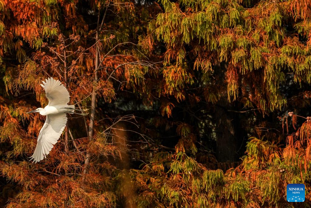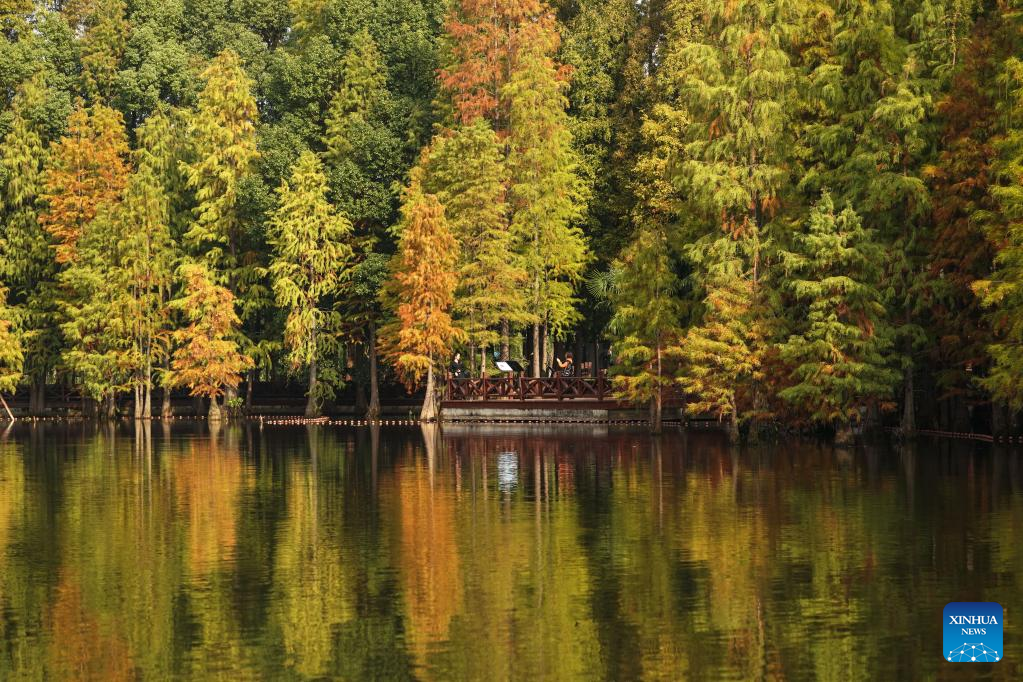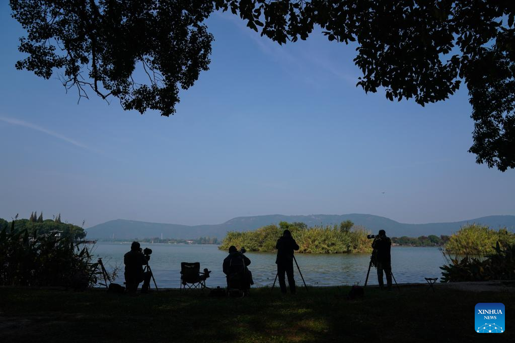 Shutterbugs take photos in the Shanghu national urban wetland park in Changshu, east China's Jiangsu Province, Nov. 15, 2022. (Xinhua/Ji Chunpeng)