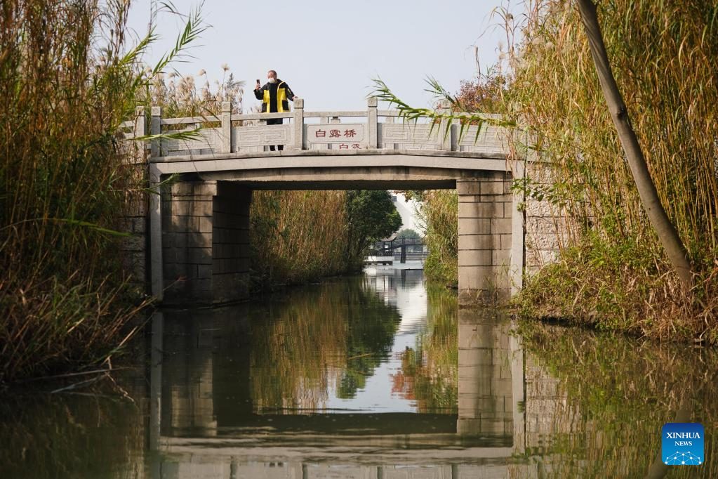A man takes photos in the Shajiabang national wetland park in Changshu, east China's Jiangsu Province, Nov. 15, 2022. (Xinhua/Ji Chunpeng)