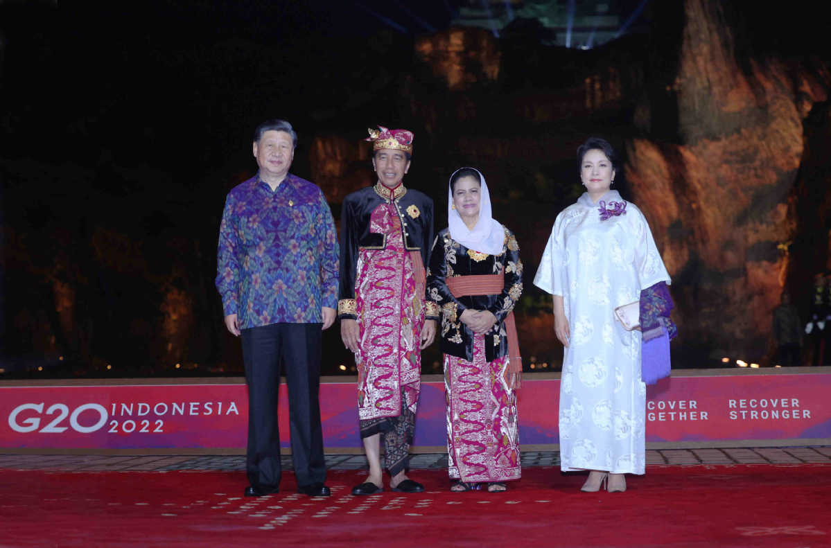 President Xi Jinping and his wife, Peng Liyuan, pose for a photo on Tuesday with Indonesian President Joko Widodo and his wife, Iriana Joko Widodo, before a welcoming dinner for world leaders at the G20 Summit in Bali, Indonesia. JU PENG/XINHUA