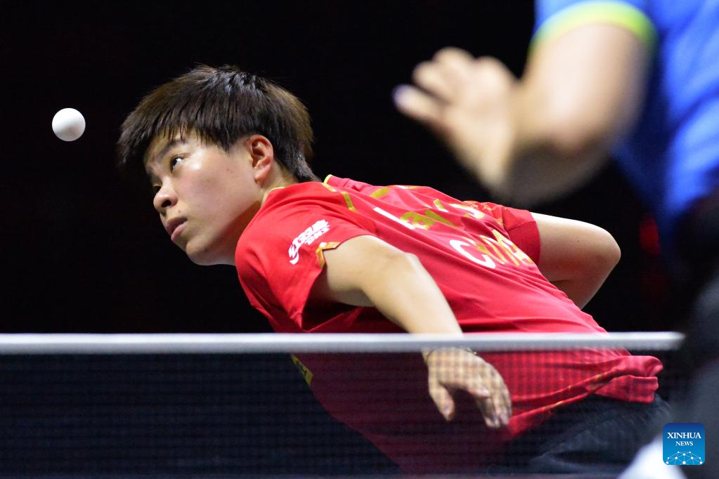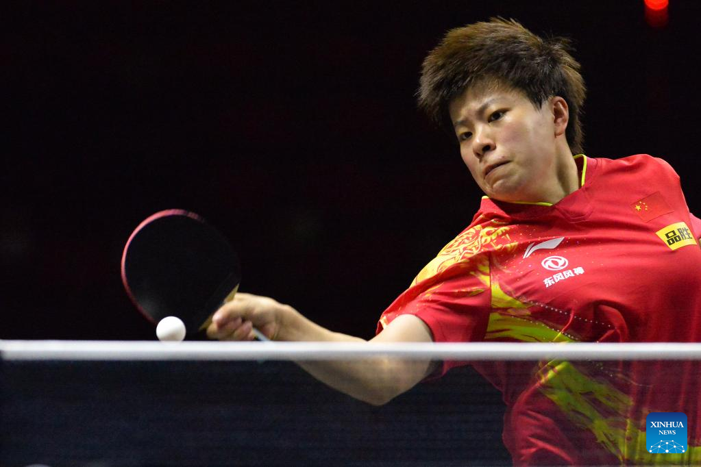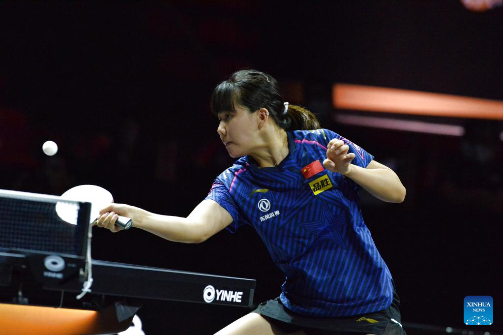 Wang Yidi of China returns the ball during the women's singles 1st round match against Zauresh Akasheva of Kazakhstan at the Asian Cup 2022 table tennis in Bangkok, Thailand, Nov. 17, 2022. (Xinhua/Rachen Sageamsak)