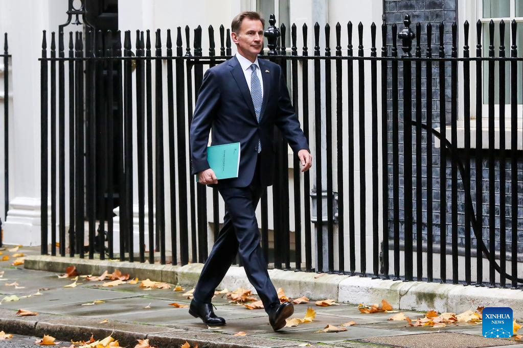 Chancellor of the Exchequer Jeremy Hunt of the United Kingdom (UK) leaves 11 Downing Street in London, Britain, on Nov. 17, 2022. (Xinhua)