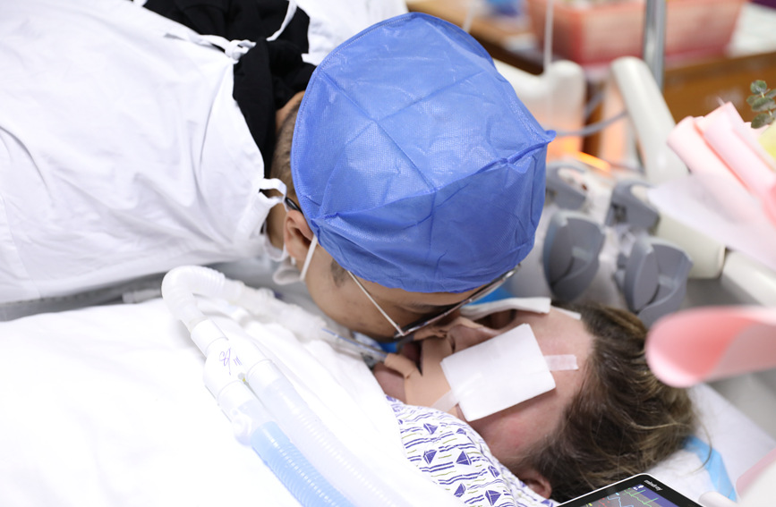 Surgeons perform liver transplant surgery on a Russian donor named Nika at the First Affiliated Hospital of Guangxi Medical University. (Photo/Wei Na)