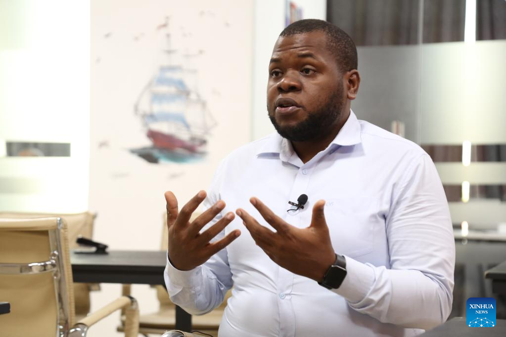 Jumanne Mtambalike, chief executive officer and co-founder of Sahara Ventures, speaks during an interview with Xinhua in Dar es Salaam, Tanzania, on Nov. 16, 2022.(Photo by Herman Emmanuel/Xinhua)
