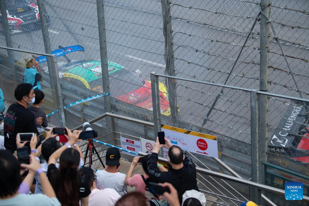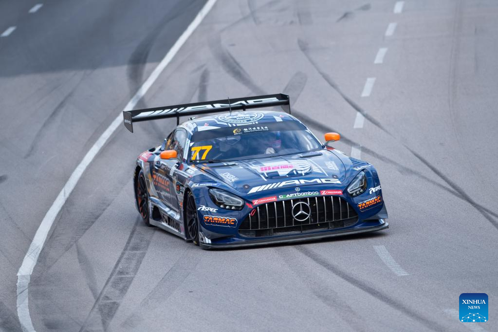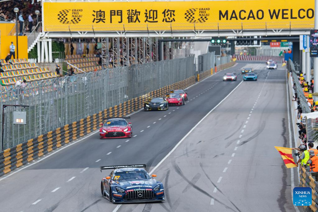 Photo taken on Nov. 19, 2022 shows the Macao GT Cup race at the 69th Macao Grand Prix in Macao, south China. (Xinhua/Cheong Kam Ka)