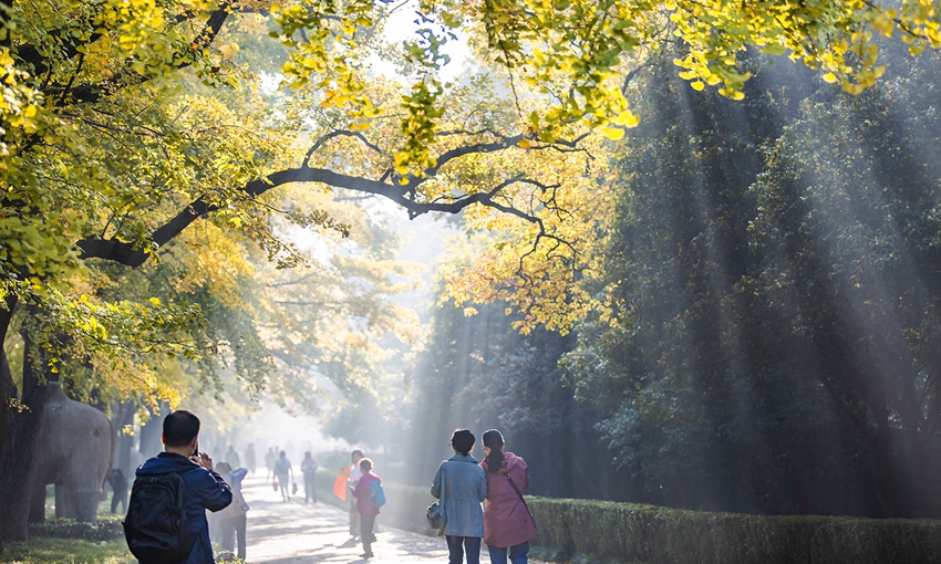 People visit the imperial Xiaoling Mausoleum in Nanjing, east China's Jiangsu Province. (Photo/Liuwei)