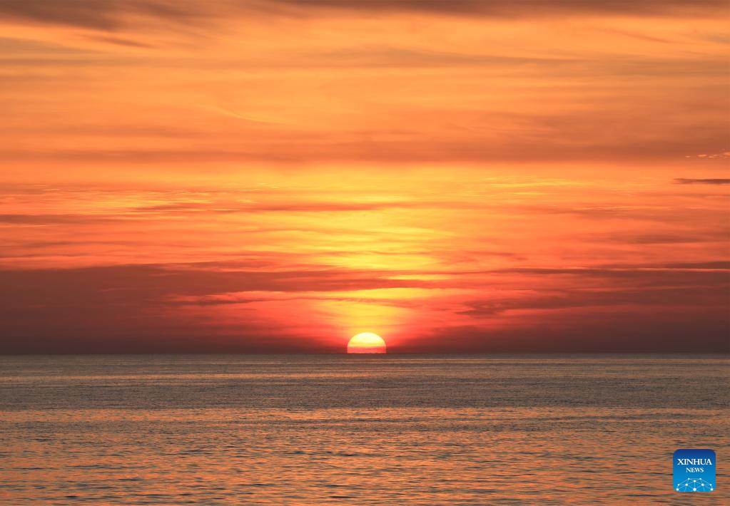Sunset view is seen at the coast of the Mediterranean Sea in Beirut, Lebanon, on Nov. 20, 2022. (Xinhua/Liu Zongya)