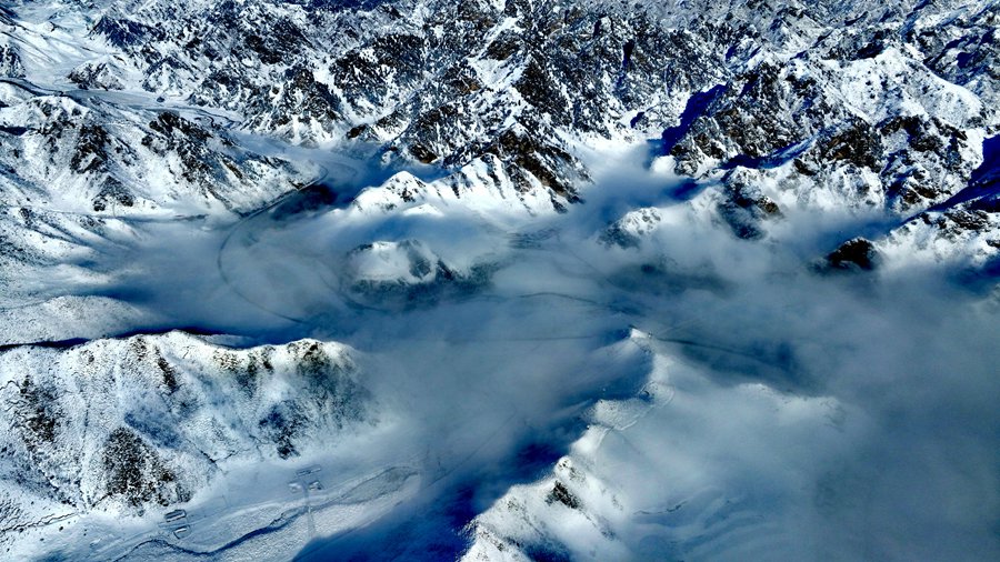 The rolling Qilian Mountains in northwest China’s Gansu Province are covered in snow, presenting a stunning spectacle. (Photo/Li Weitai)
