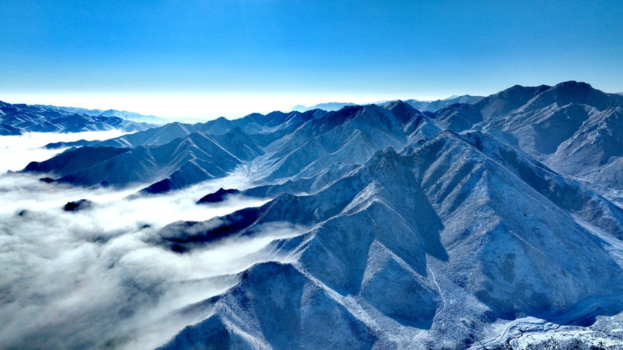 The rolling Qilian Mountains in northwest China’s Gansu Province are covered in snow, presenting a stunning spectacle. (Photo/Li Weitai)
