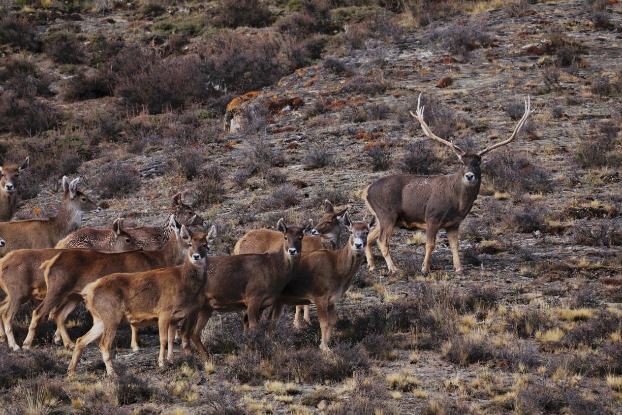 This photo shows a herd of white-lipped deer at the Sanjiangyuan National Park in northwest China’s Qinghai Province. (Photo/Jiangwen Jiangcuo)