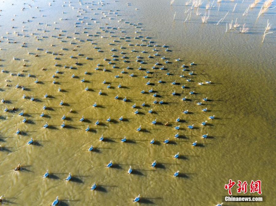 Flocks of bar-headed geese gather at the Yani National Wetland Park park in Nyingchi, southwest China's Tibet Autonomous Region, Nov. 19, 2022. (Photo: China News Service/Dong Zhixiong)