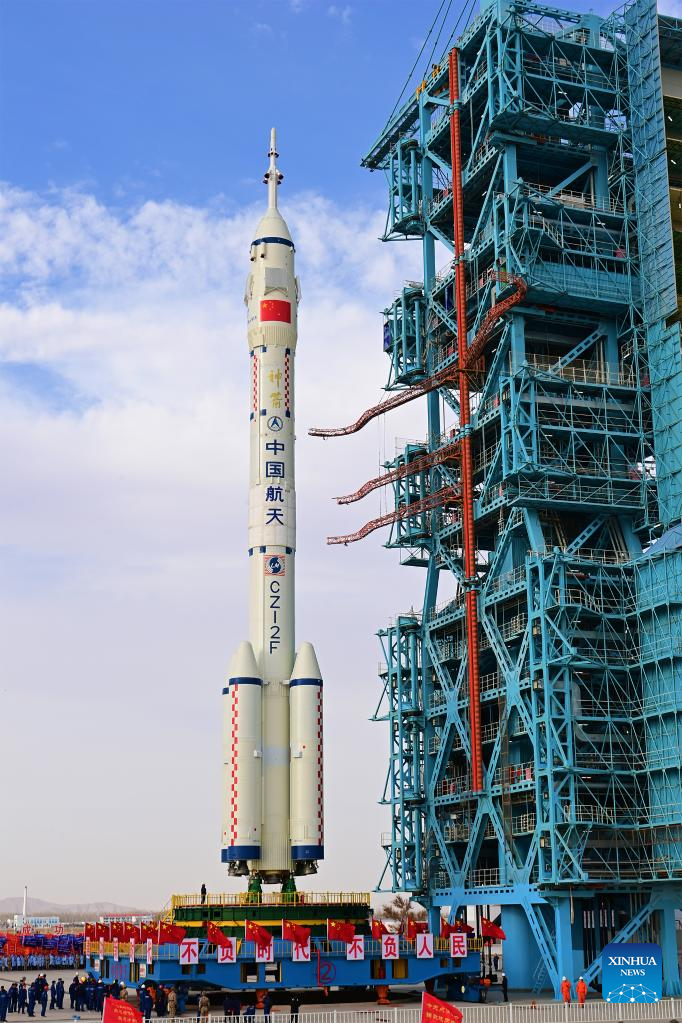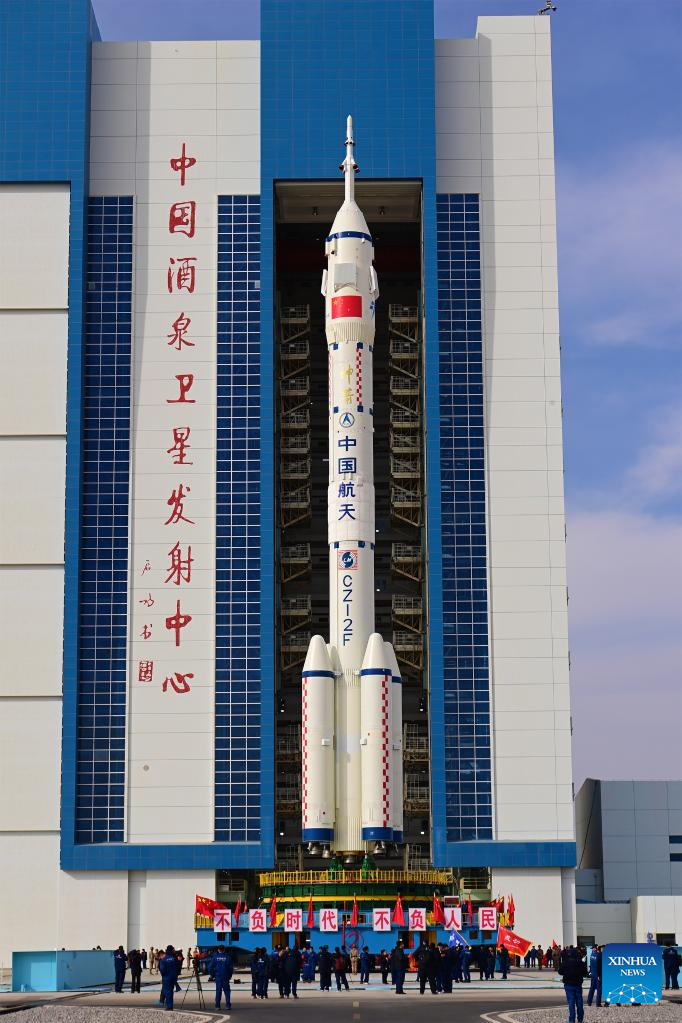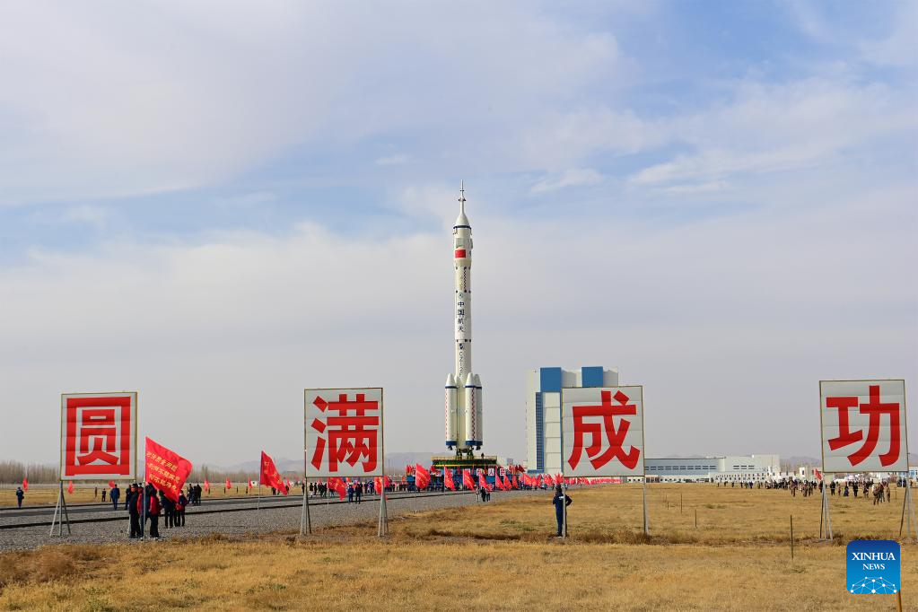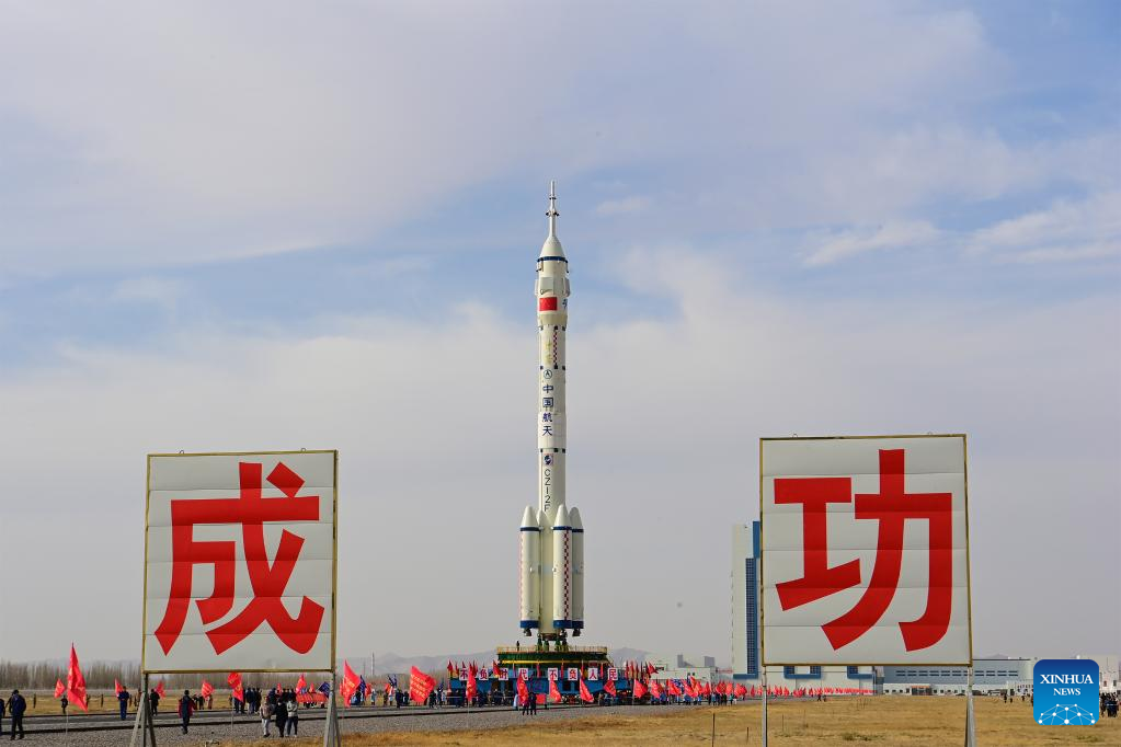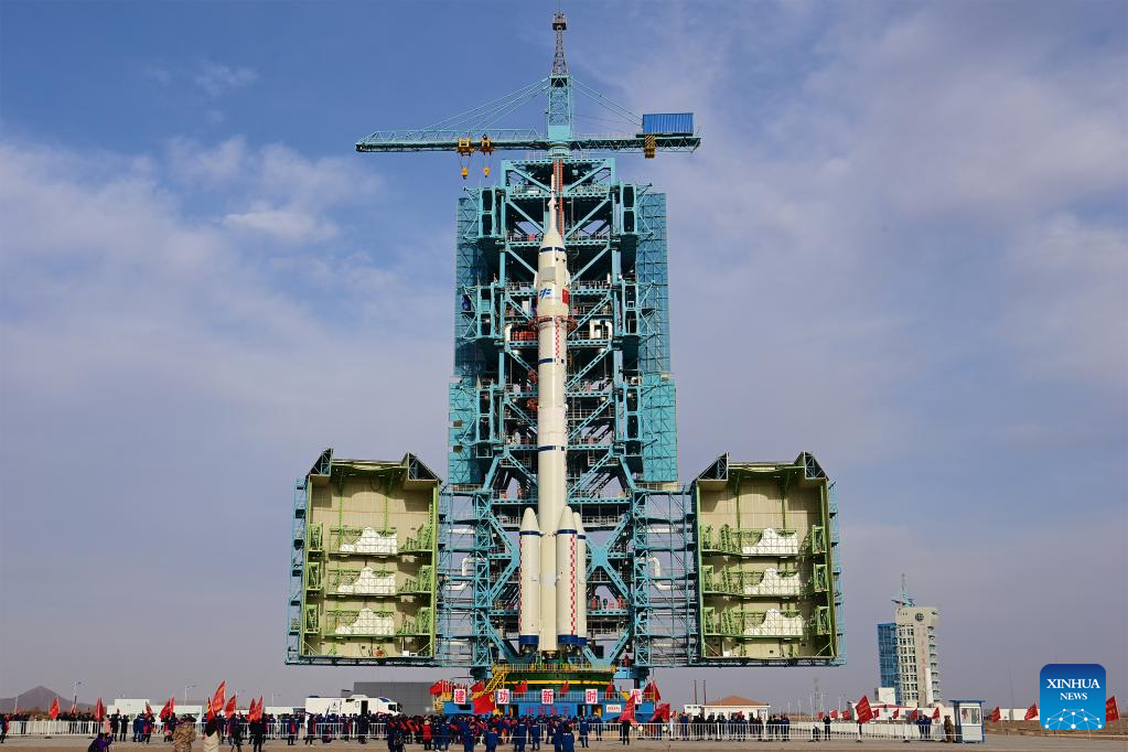 JIUQUAN, Nov. 21 (Xinhua) -- The combination of the Shenzhou-15 crewed spaceship and a Long March-2F carrier rocket was transferred to the launching area on Monday, the China Manned Space Agency (CMSA) said.