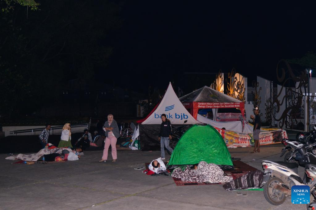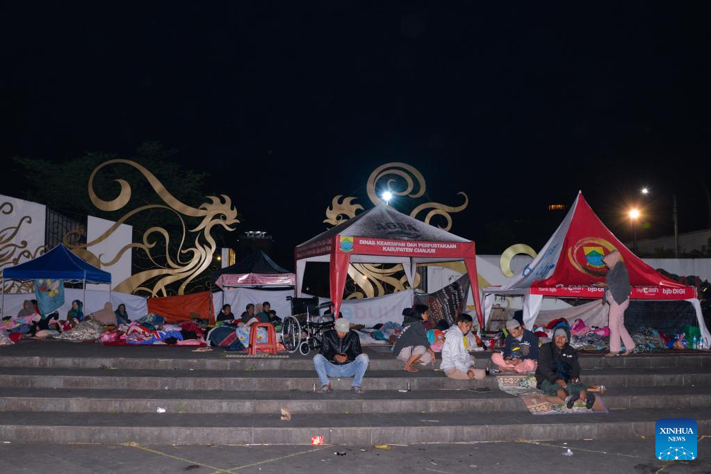 People affected by the earthquake rest outdoors in Cianjur, West Java, Indonesia, on Nov. 22, 2022. (Xinhua/Xu Qin)