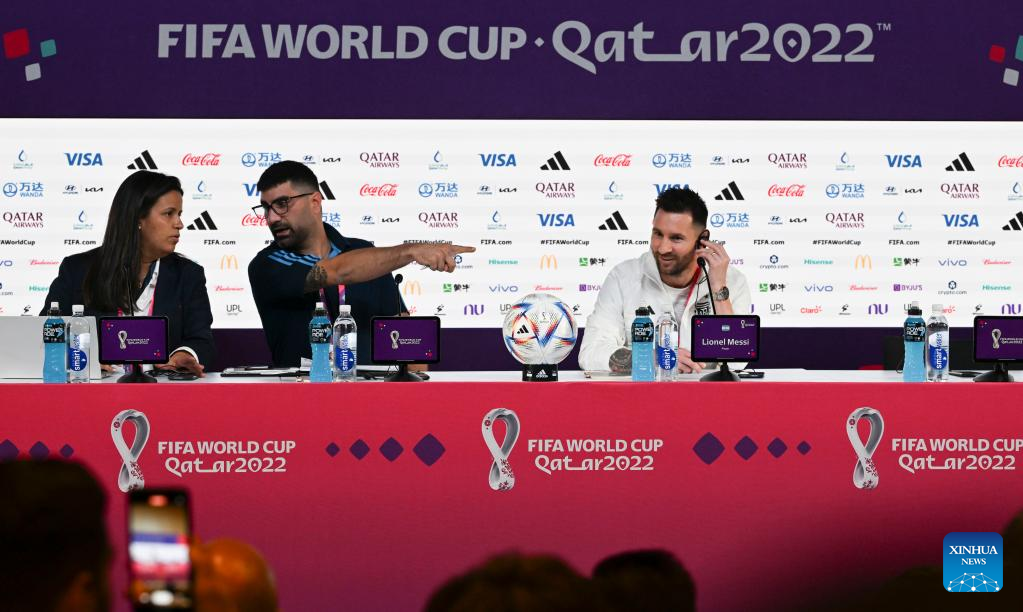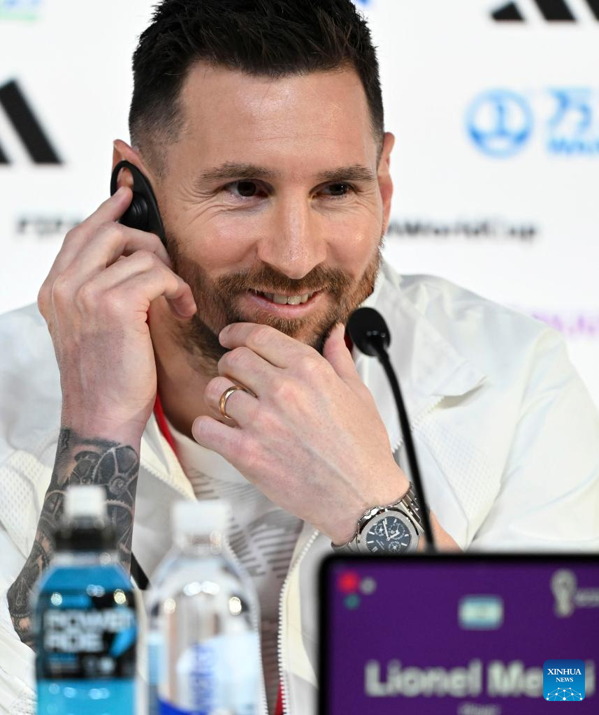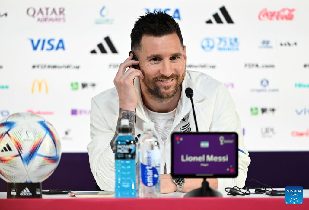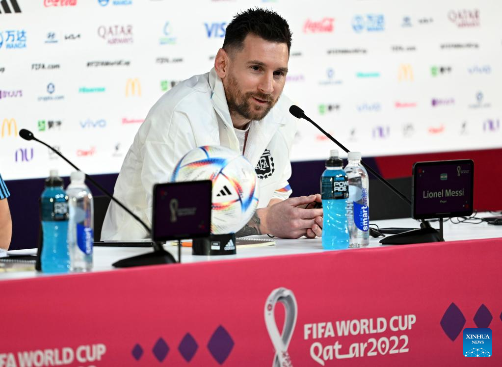 Argentina's forward Lionel Messi attends a press conference one day ahead of the group C match between Argentina and Saudi Arabia at the 2022 Qatar FIFA World Cup in Doha, Qatar, Nov. 21, 2022. (Xinhua/Xia Yifang)
