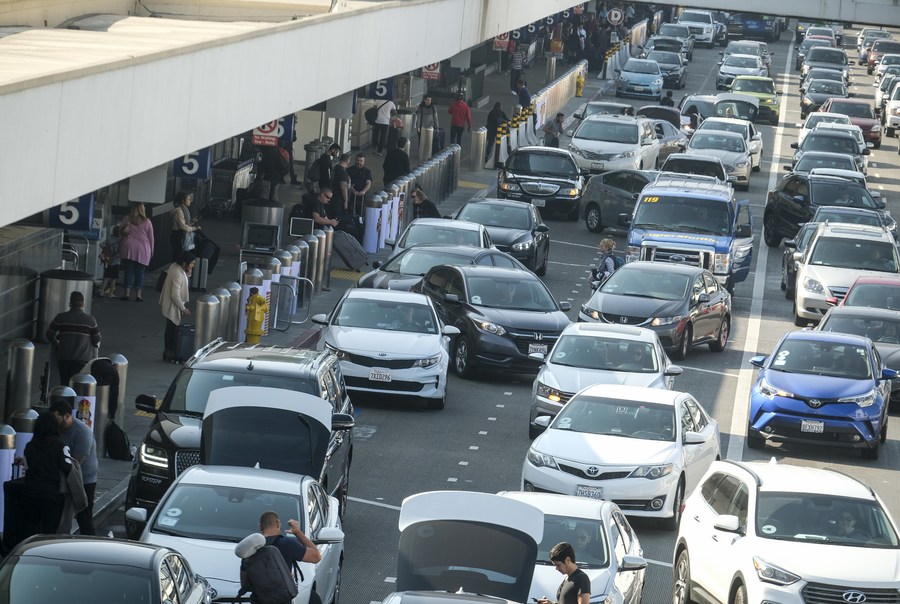 Holiday travelers arrive at Los Angeles International Airport in Los Angeles, the United States, Nov. 20, 2018. (Xinhua/Zhao Hanrong)