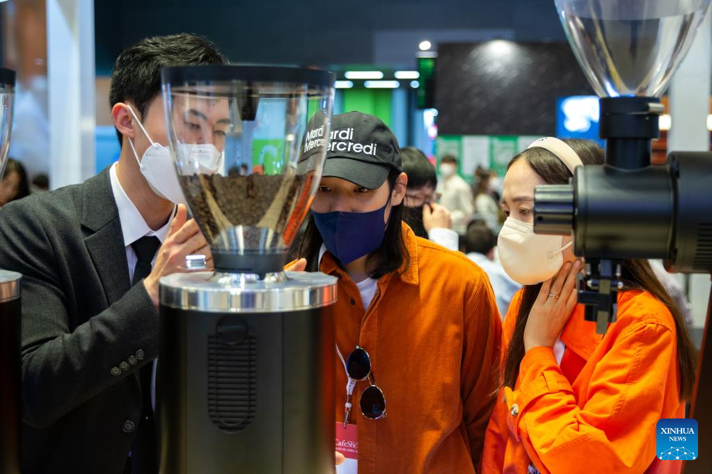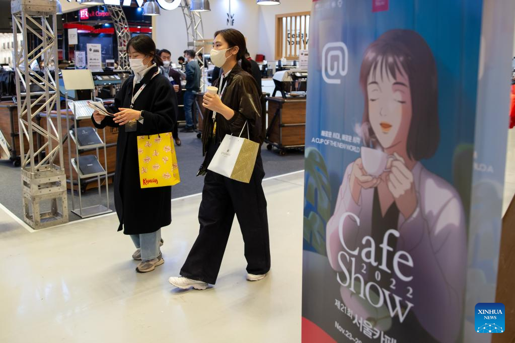 People visit the 2022 Seoul International Cafe Show in Seoul, South Korea, Nov. 23, 2022. The 2022 Seoul International Cafe Show kicked off in Seoul on Wednesday. (Xinhua/Wang Yiliang)