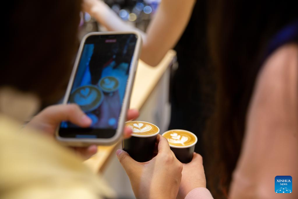 Visitors take photos during the 2022 Seoul International Cafe Show in Seoul, South Korea, Nov. 23, 2022. The 2022 Seoul International Cafe Show kicked off in Seoul on Wednesday. (Xinhua/Wang Yiliang)