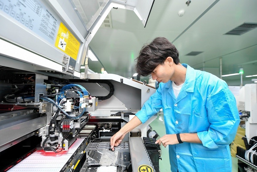 A worker manufactures smart home products on a fully automated production line in a plant of an electronic company in Huzhou, east China's Zhejiang province. Through real-time sampling of production data and whole-supply chain digital production, the company has improved its production efficiency, and the whole manufacturing procedures are traceable and intelligent. (People's Daily Online/Tan Yunfeng)