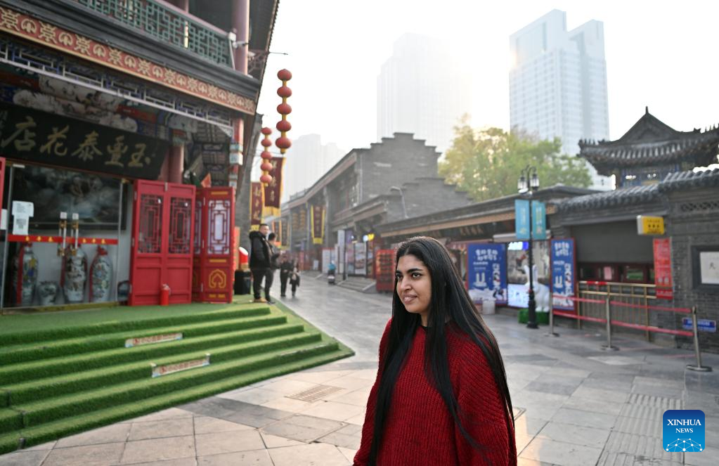 Gurmehar Singh visits a traditional culture street in north China's Tianjin, Nov. 17, 2022. (Xinhua/Li Ran)