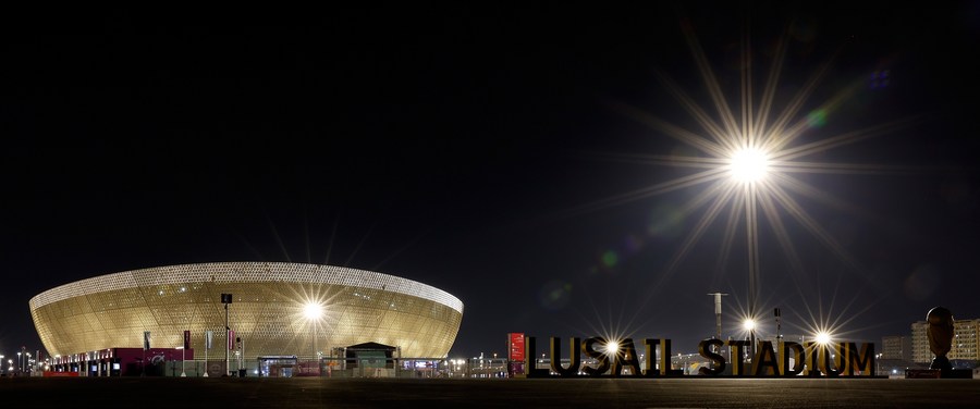 This photo taken on Nov. 17, 2022 shows a view of the Lusail stadium in Doha, Qatar. (Xinhua/Wang Lili)