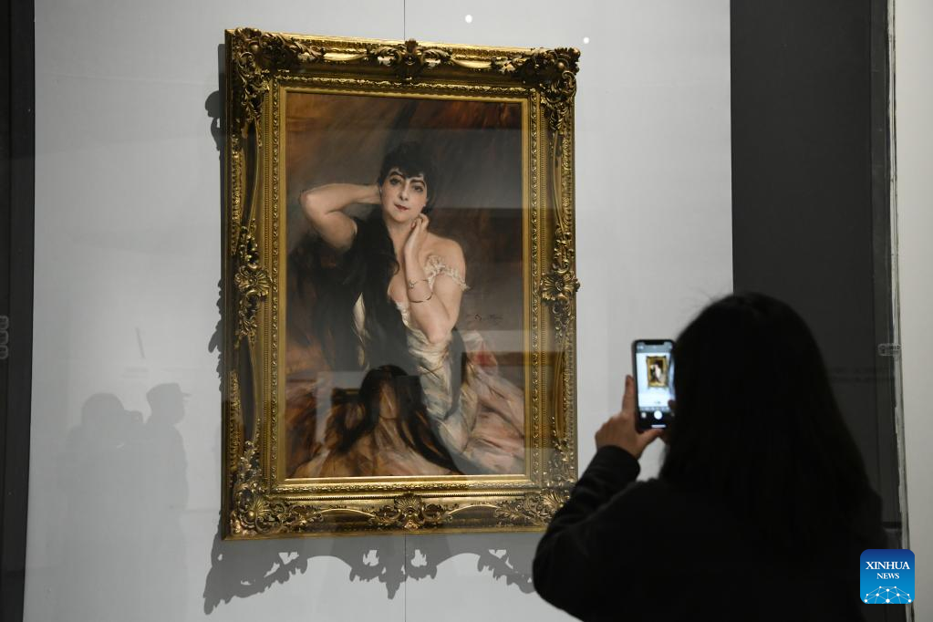 All artworks on display are from the National Gallery of Modern and Contemporary Art in Italy, with a total estimated value of 1 billion yuan (about 139 million U.S. dollars). (Xinhua/Tang Wenhao)
